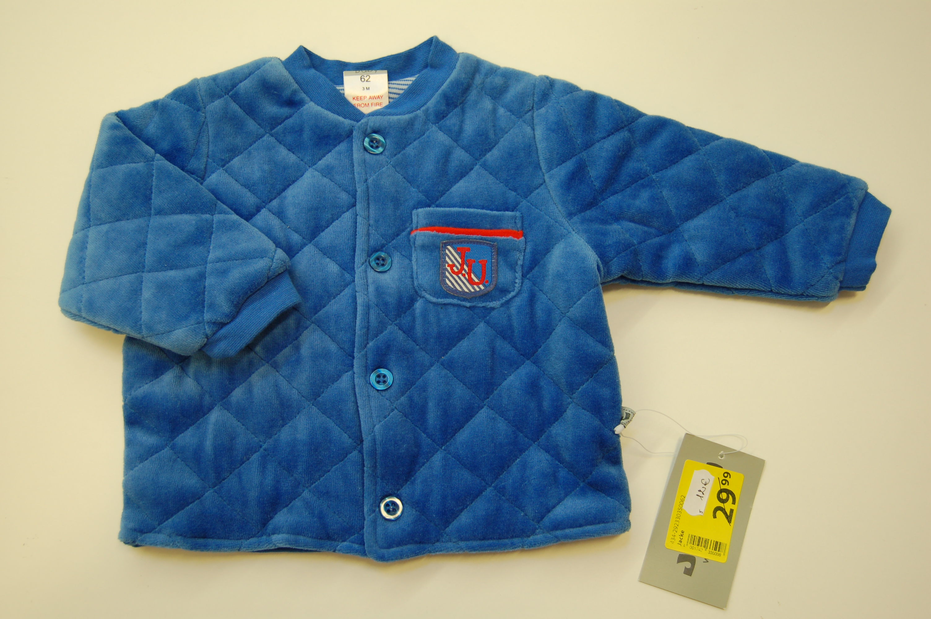 Jacky hästi pehme ja soe jakk, 62 cm. Koostis: pealt 80% puuvill ja 20% polüester, vahel vooder 100% polüester ja seest 100% puuvill.