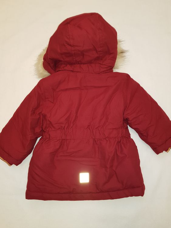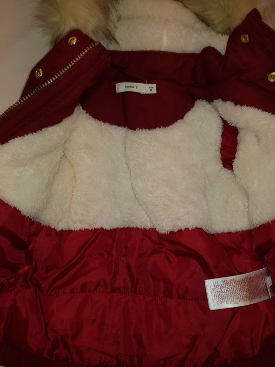 Name It pehme ja soe talvejope, 80 cm. Ühel trukil on natuke värvi maas aga see ei sega kandmist! Kapuutsi karv on eemaldatav. Koostis: 100% polüester.