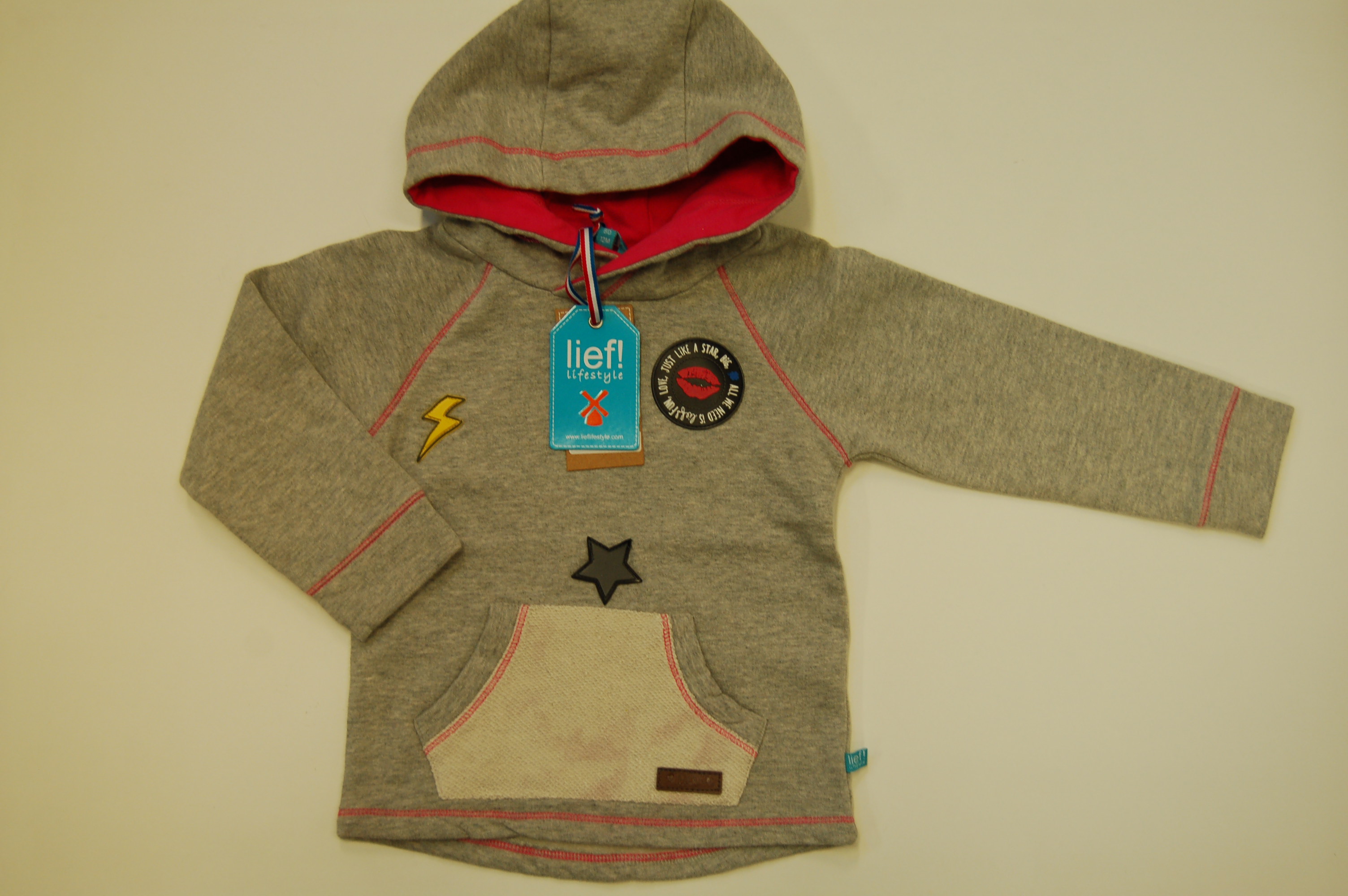 Lief mõnusalt pehme kapuutsuga dressipluus, 80 cm. Koostis: 100% puuvill.