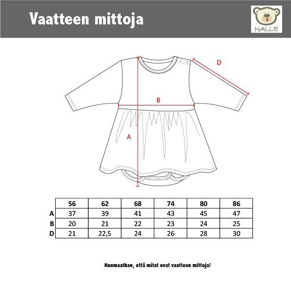 Nalle imearmsa prindiga ja ülipehme orgaanilisest puuvillast bodi-kleit, 74 cm. Bodi saab trukkidega pikendada. Materjal: 95% orgaaniline puuvill, 5% elastaan. (Soome) (Ei ole valge vaid kreemikas)