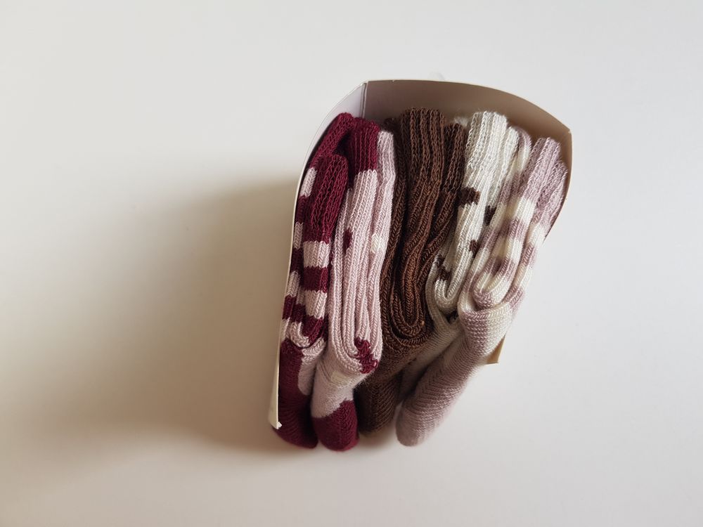 Minymo armsad beebisokid 5 paari, suurus 15-18. Materjal: 2 paari on - 65% puuvill, 30% polüester, 3% polüamiid, 2% elastaan ning 3 paari on - 78% puuvill, 20%polüamiid,2% elastaan.