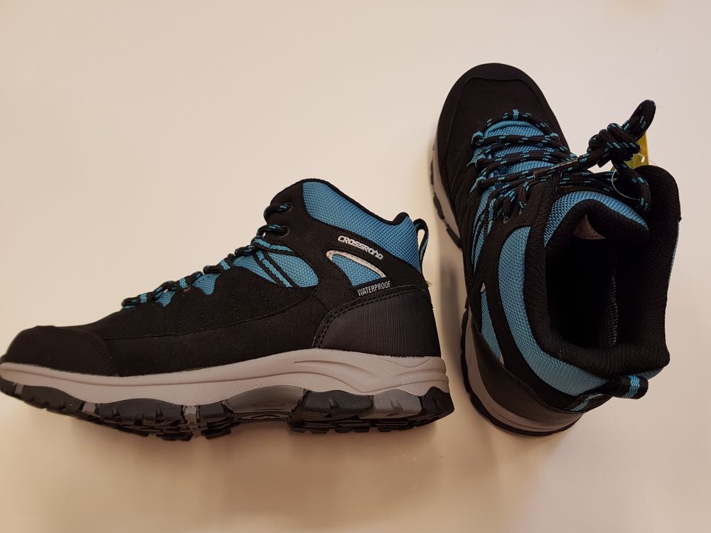 Crossroad ilusad veekindlad matkasaapad, suurus 35. Pealmine materjal: kunstnahk ja tekstiil, seest tekstiil ja välistald on kummine.
