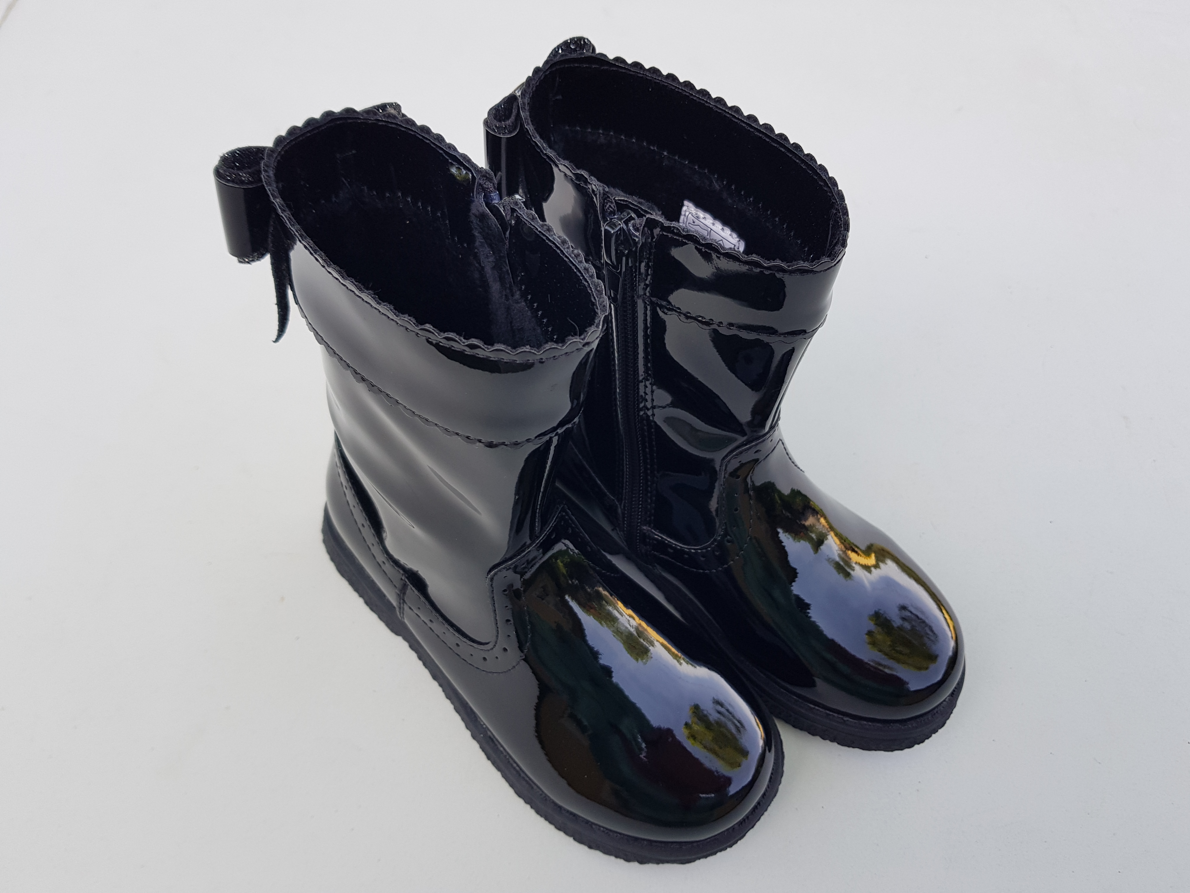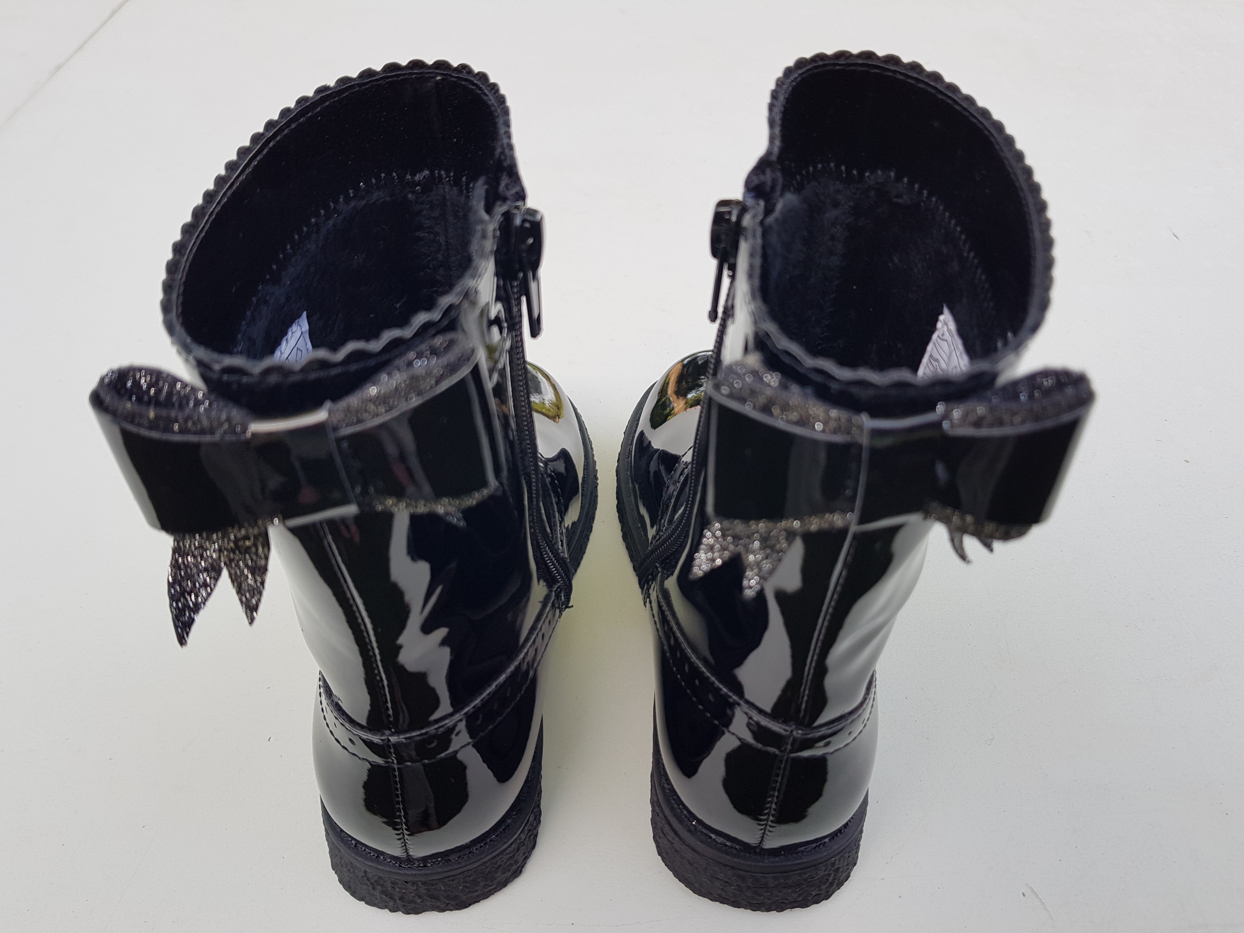 Friboo imearmsad lakkknahast k/s saapad, suurus 28. Sees õhem karvane vooder. Materjal: pealt kunstnahk, seest tekstiil ja välistald on kummine. Karpi ja etikette ei ole.
