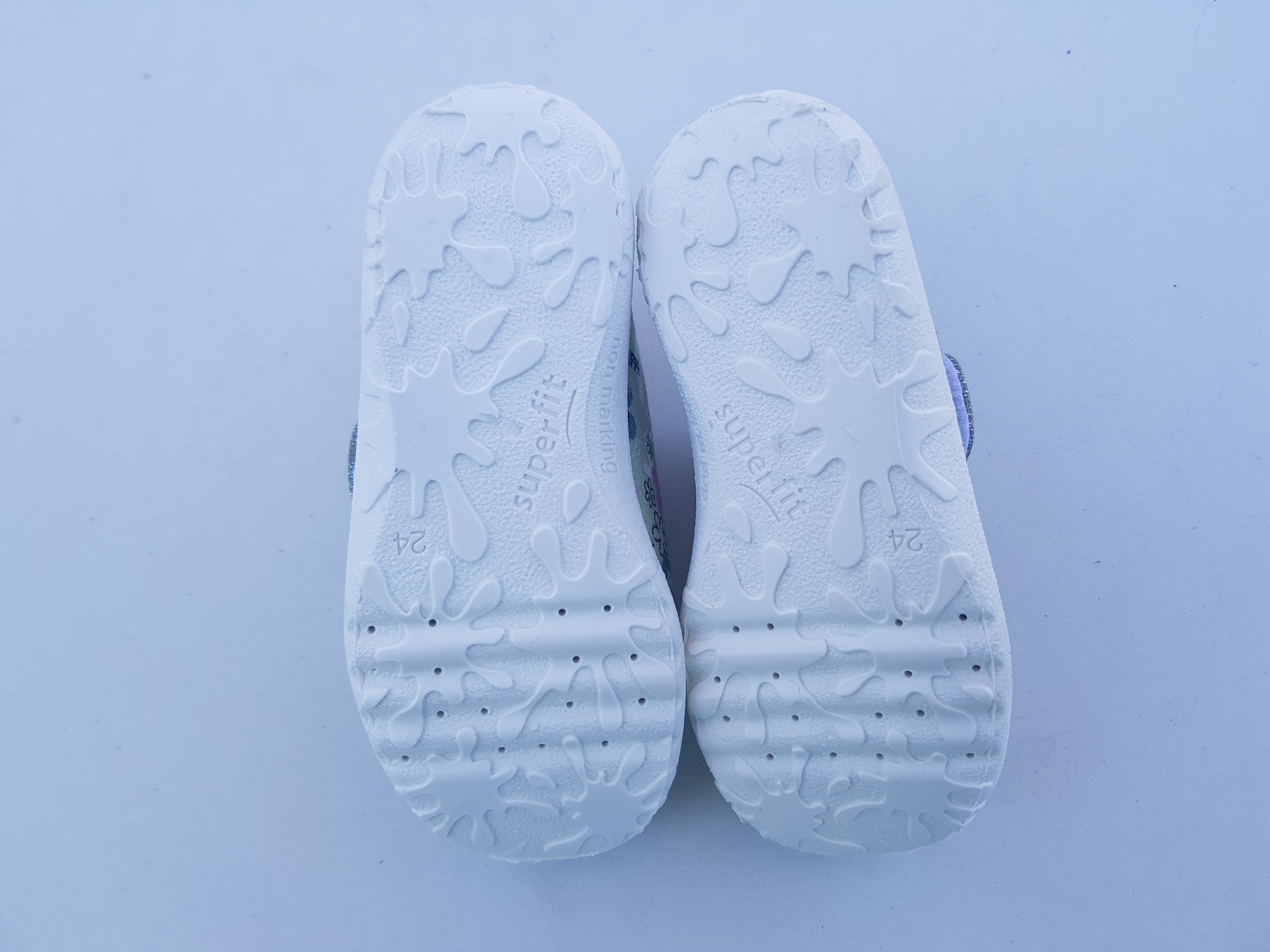 Superfit ülimugavad jalatsid, suurus 24. Hästi painduvad, pehmed ja vastupidavad. Seest 100% puuvill ehk võib kanda ilma sokita. Jalad ei lähe niiskeks, kuna hingaamine toimub läbi erilise talla ja selleks on spetsiaalsed augukesed. Libisemiskindel välistald tagab stabiilse ja usaldusväärse haardumise. Mugav krõpskinnitus, mis sobib nii laiemale kui kõrgemale jalale.