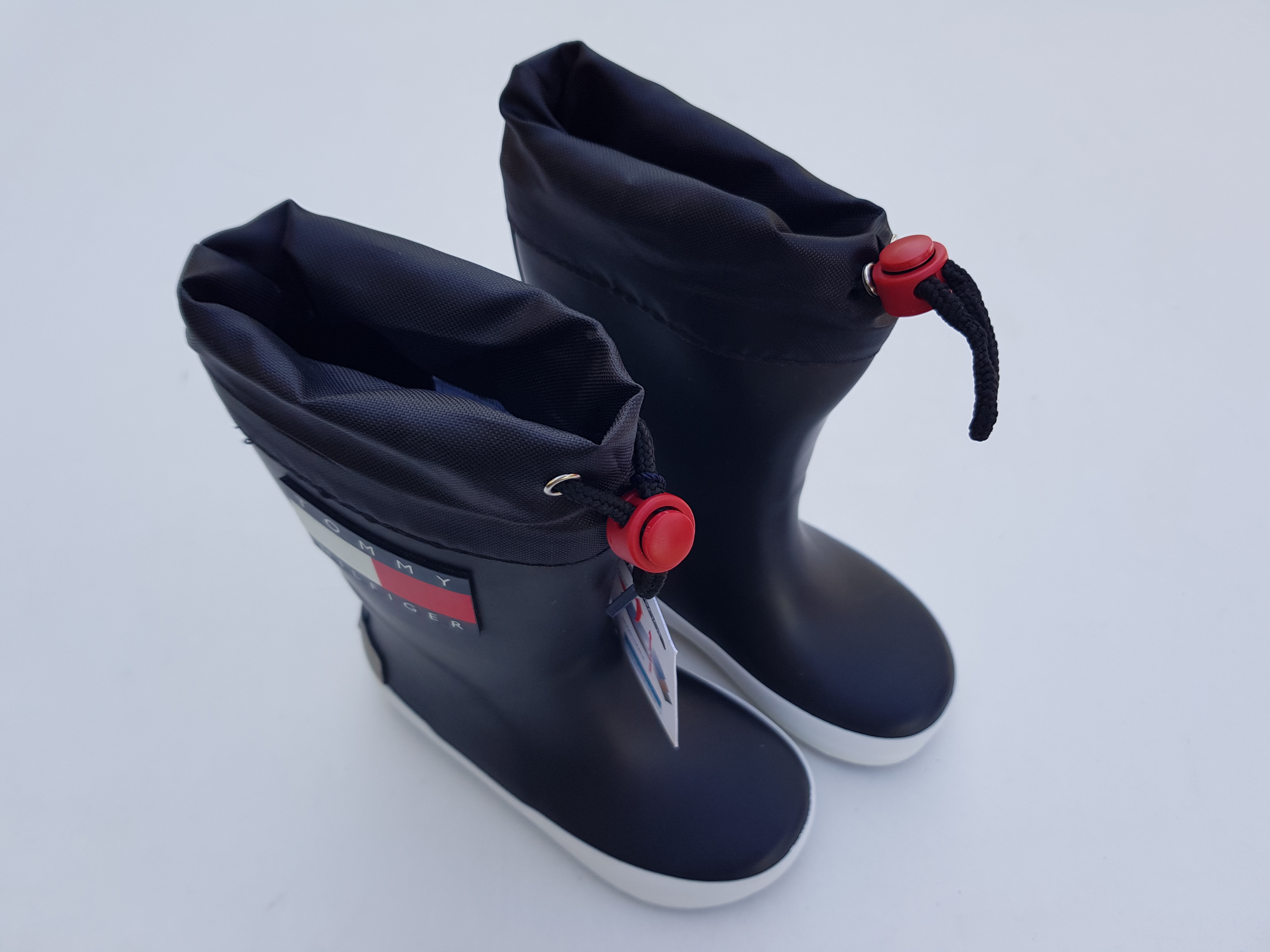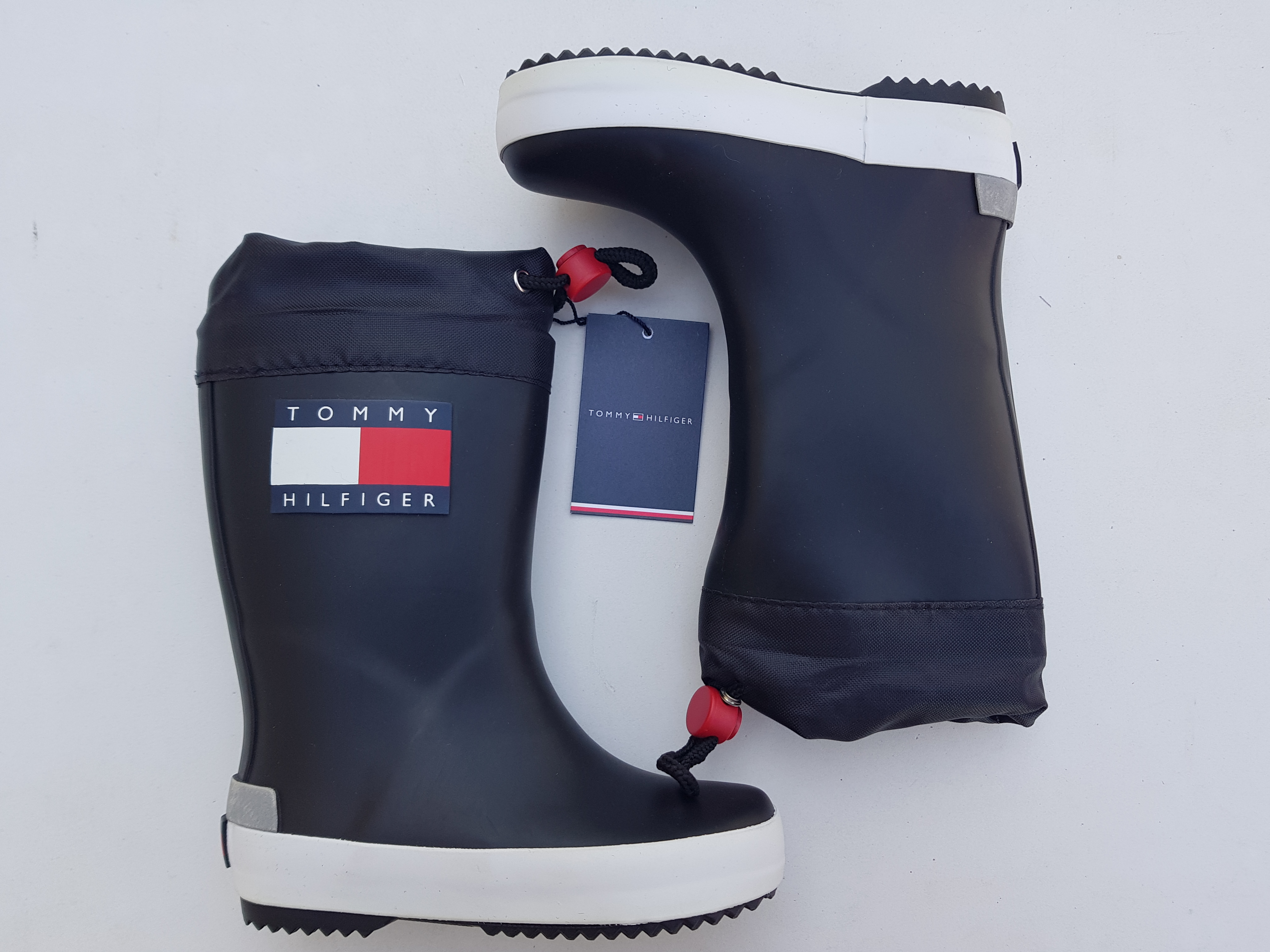 Tommy Hilfiger mõnusalt kerged ja kvaliteetsed kummikud, suurus 24. Kummikutel on eemaldatav sisetald ja tekstiilist vooder. Välistald on kummist ja sakilise mustriga. Materjal: kumm