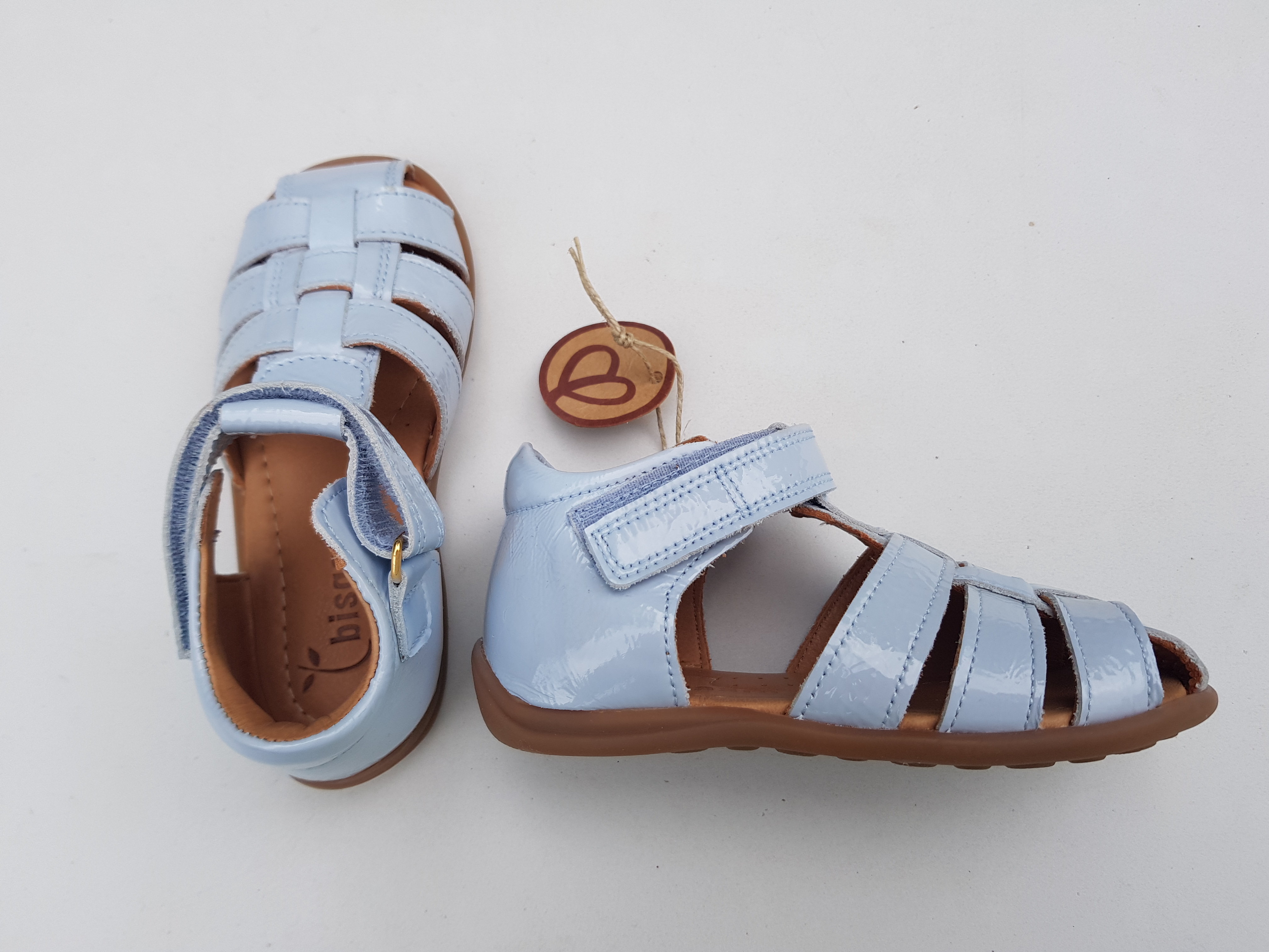 Bisgaard kerged ja pehmed nahast sandaalid, suurus 25. Portugalis käsitsi valmistatud naturaalsest ja hingavast nahast sandaalid tagavad erakordse kvaliteedi. Taimparknahast vooder ja sisetald pakuvad mugavat ja pehmendatud kogemust. Taaskasutatud kummist välistald pakub usaldusväärset haarduvust ja vastupidavust. (läikiv lakk-nahk)