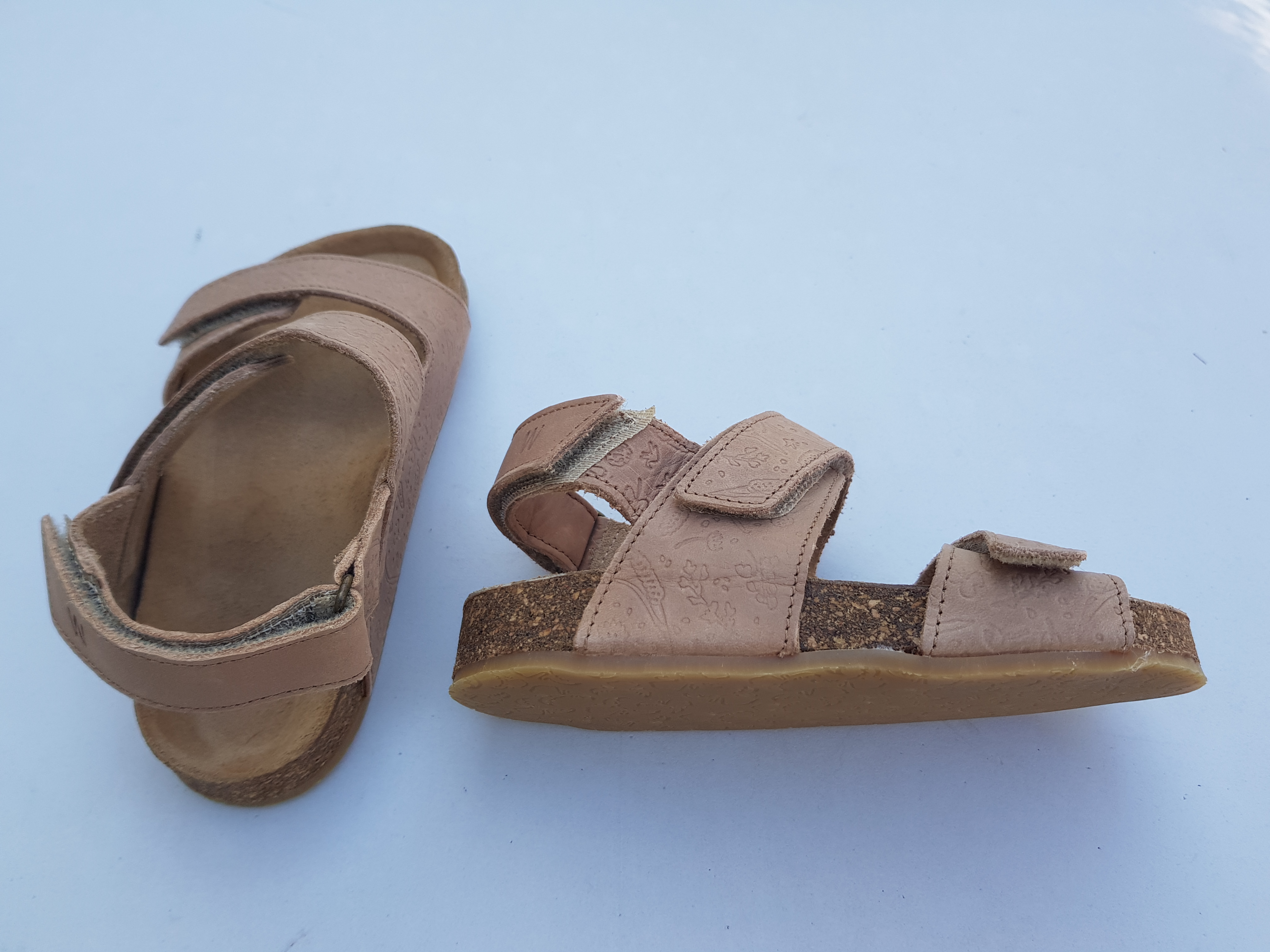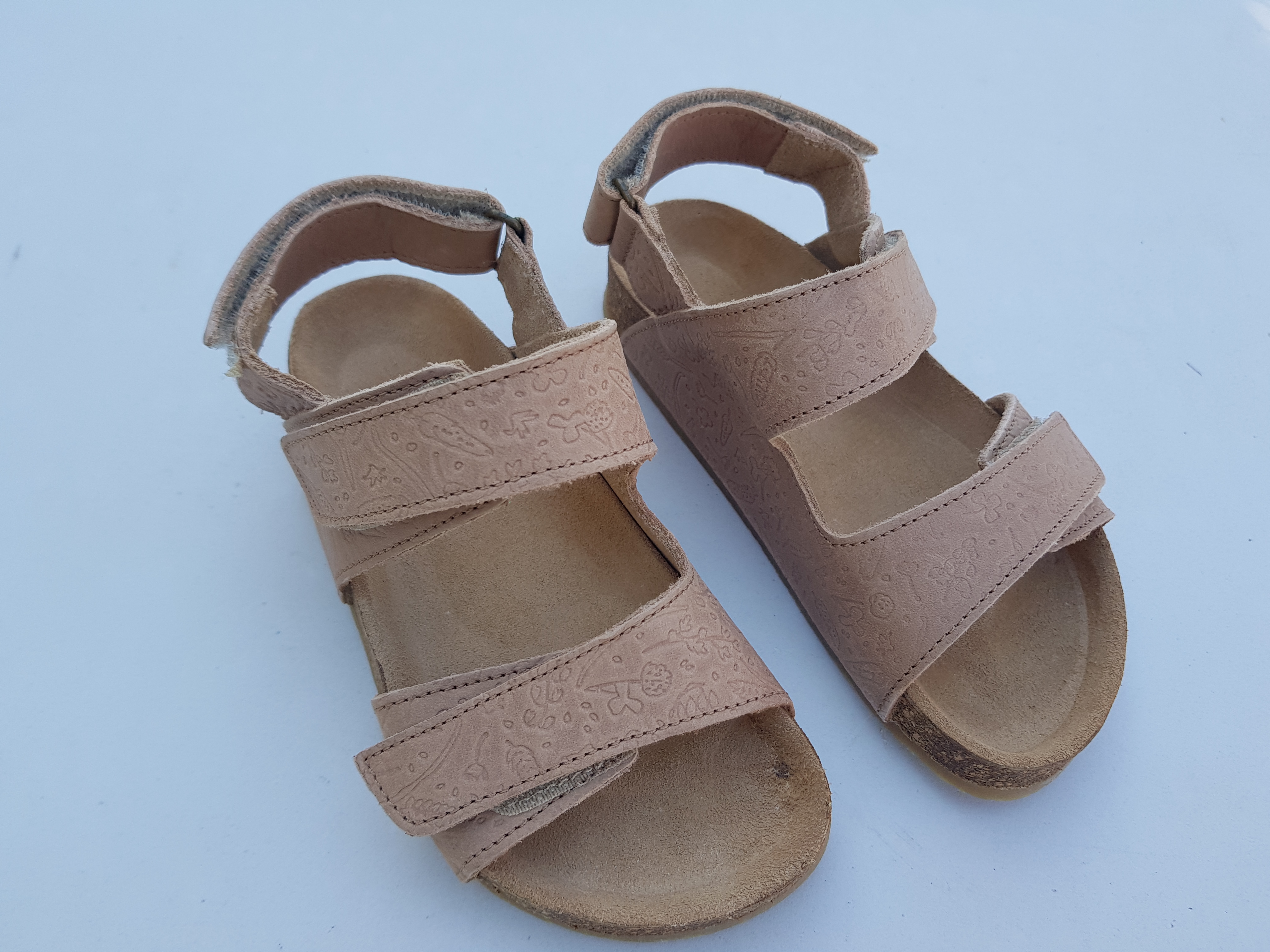 Sandaalid on valmistatud kroomi- ja metallivabast nahast Teie lapsele. Nahale on pressitud üks Wheat signatuurtrükistest. Sandaalidel on kaks takjapaela üle jala ja kolmas takjapael tagaküljel, et tagada tihe istuvus ja et, vältida jala libisemist.