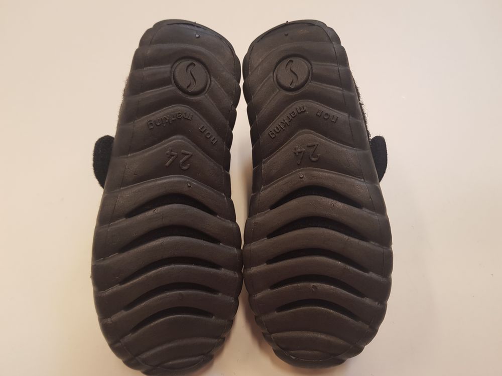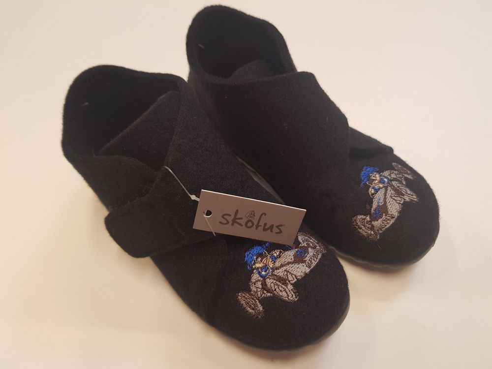 Skofus kerged, soojad ja imehästi painduva tallaga sussid, suurus 25. Pealt ja seest on 100% vill. Libisemiskindel PU välistald. Fikseeritud kontsatugi tagab lapse pahkluu vajaliku toestuse. Väga lihtne jalga panna. (Taani)