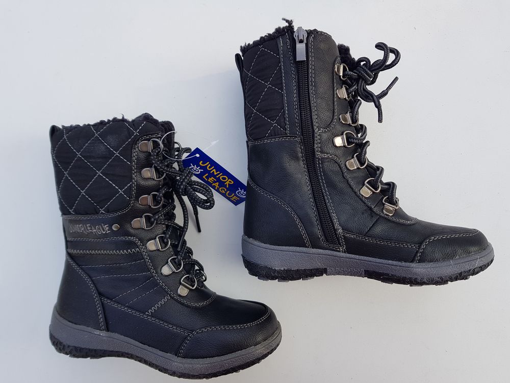 Junior League sooja voodriga talvesaapad, suurus 28. Pealmine materjal: kunstnahk ja tekstiil, seest tekstiil (karvane vooder) ja välistald on kunstkiud.