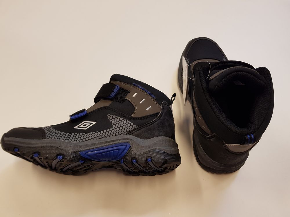 Umbro korralikud veekindlad matkasaapad, suurus 34. Pealmine materjal: kunstnahk ja tekstiil, seest tekstiil ja välistald on kummine.