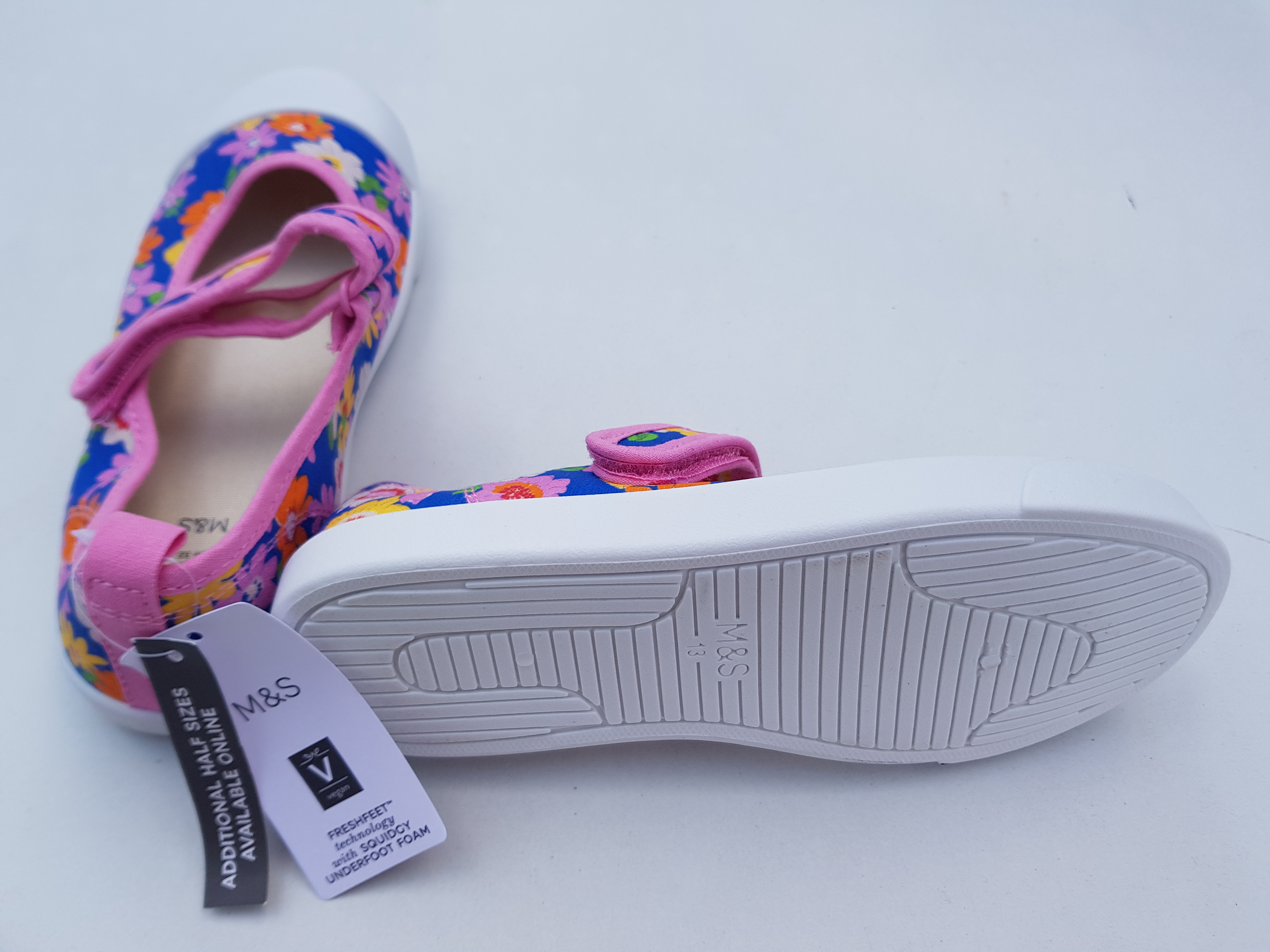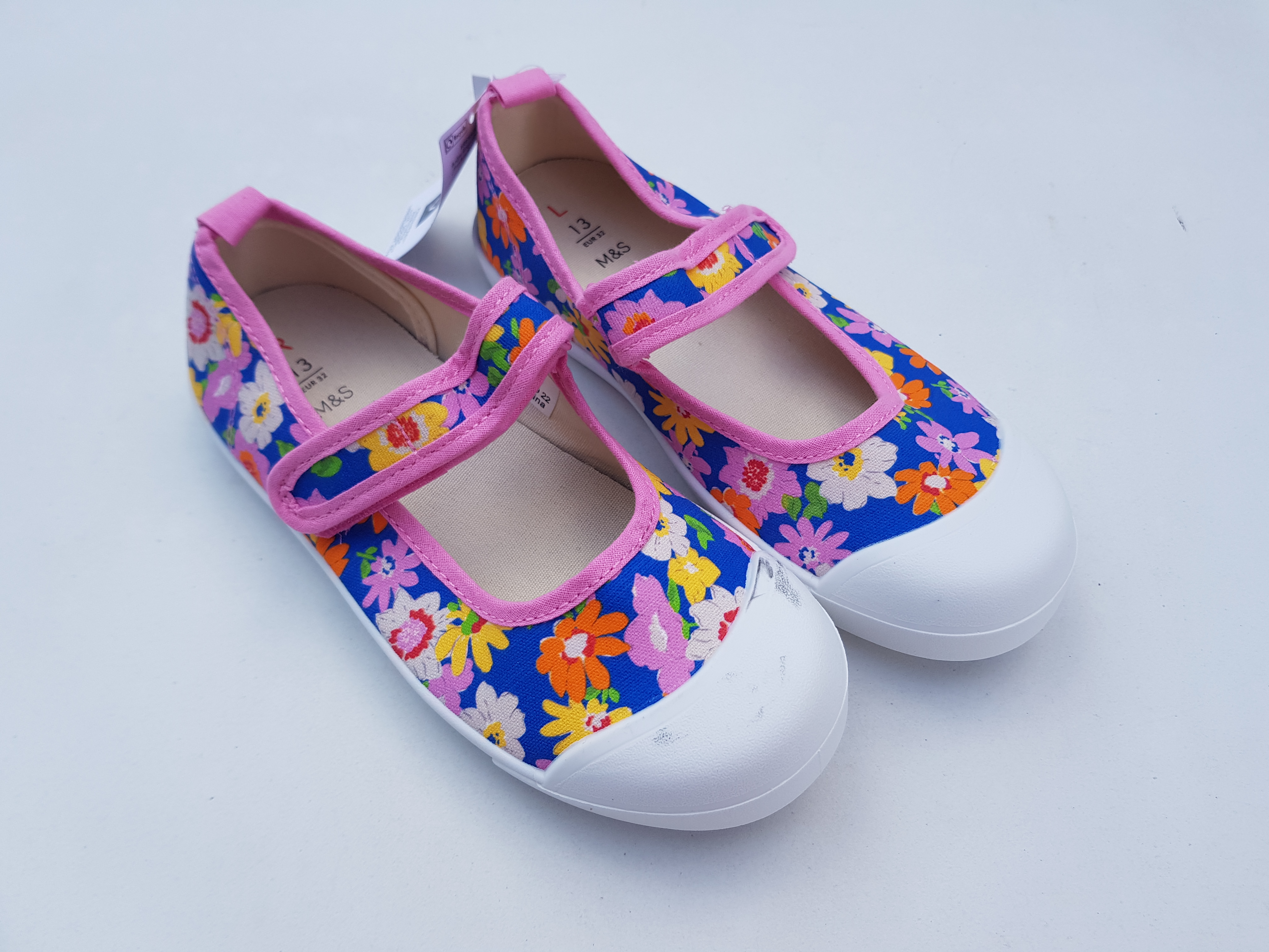 Marks & Spencer ilusad lillelised tennised, suurus 32. Hästi pehmed ja mugavad. Pealt ja seest on tekstiil ning välistald on kummist.