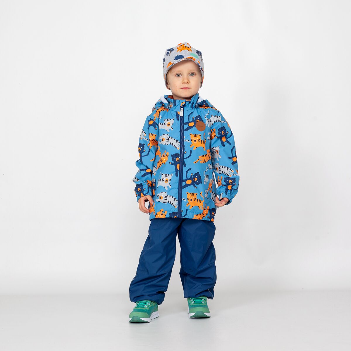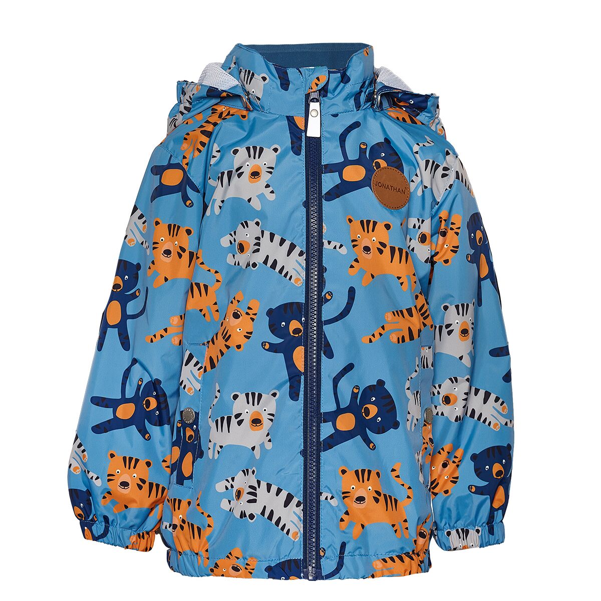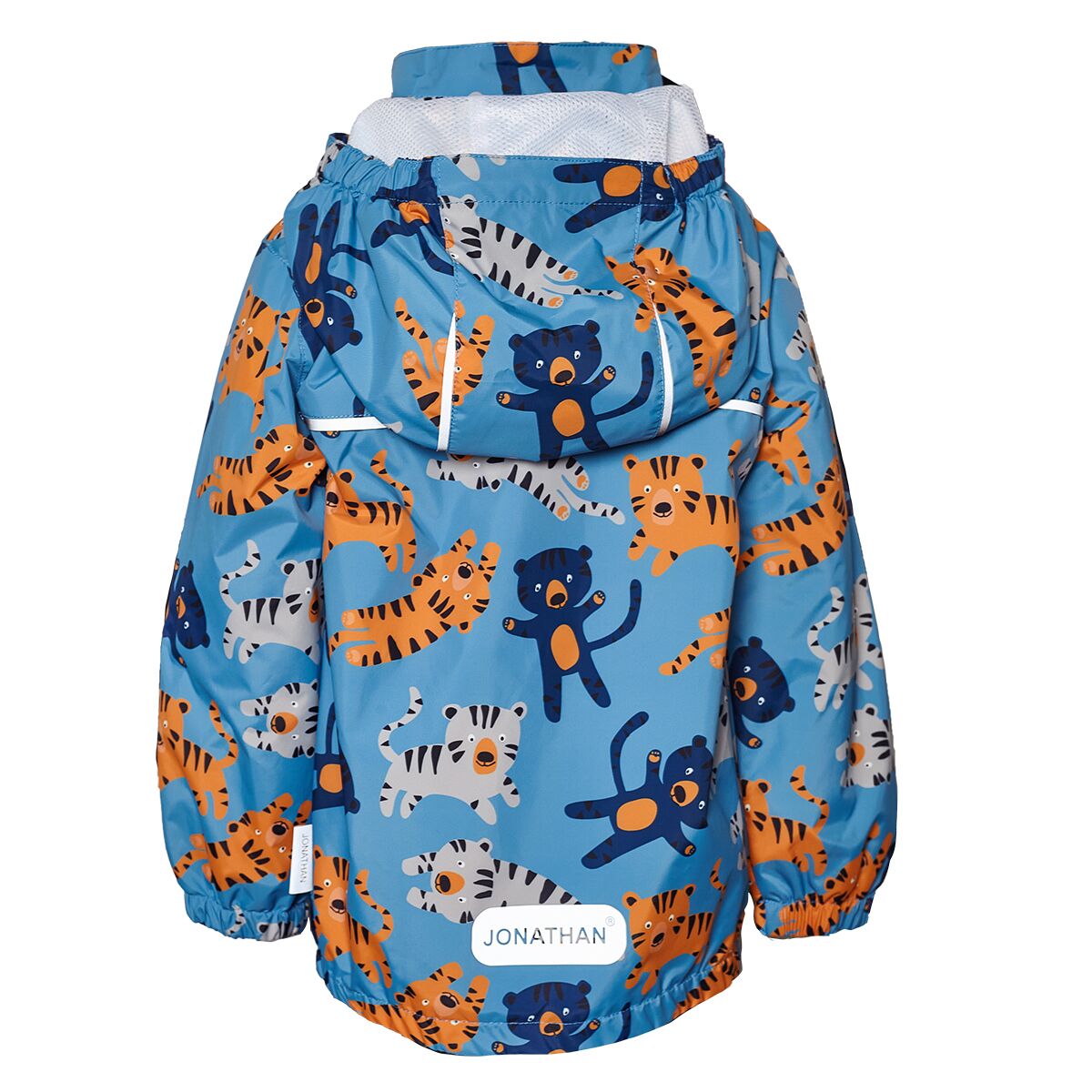 Jonathan armsa tiigri prindiga tuulejope. Sees võrkvooder. Vee- ja tuulekindel, hingav ja vastupidav jope. Helkurdetailid. PFC vaba. Eemaldatav kapuuts. Ees kaks trukiga taskut. Veekindel > 3000mm. Hingavus >3000g/m2/24h. Materjal: 100% polüester.