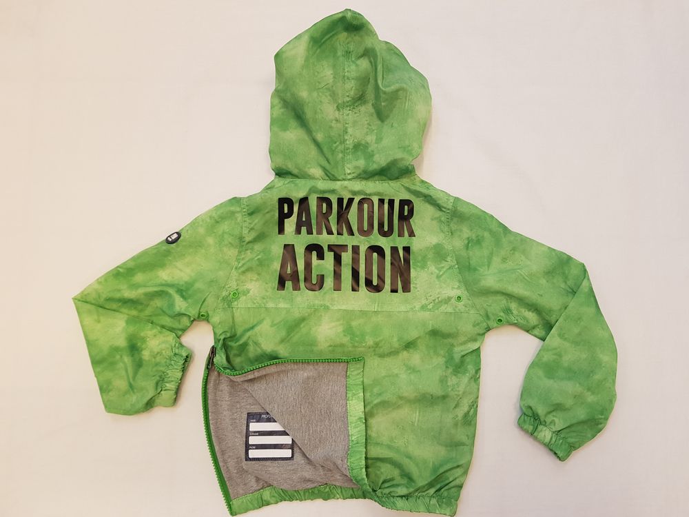 Papermoon väga äge trikotaažist voodriga tuulejope, 104 cm. Mugavaks selga panekuks on küljel lukk. Koostis: seest 100% puuvill, väljast 100% polüester.