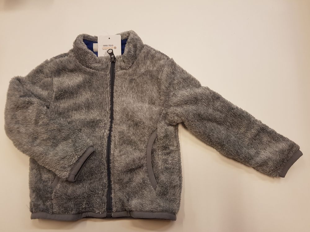 Laste imepehme ja soe fliisist jakk, 4-5 aastat. Sees pehme puuvillane vooder. Koostis: Pealt 100% polüester ja seest 100% puuvill. OEKO-TEX