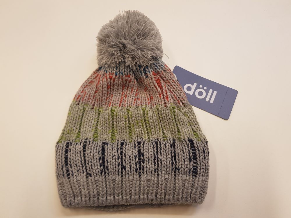 Döll soe ja veniv kootud tutimüts, suurus 53. Mütsi sisemuses fliisvooder ringjalt ümber kõrvade. Koostis: 100% polüakrüül ja voodriosa 100% polüester. Originaalhind 19.95€