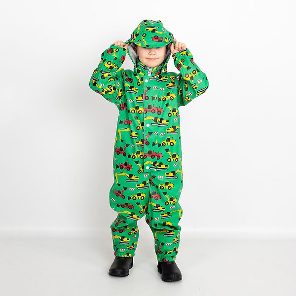 Jonathani vihmakombe on absoluutne hitt, kui kõik on märg ja mudane. Kombe kõik õmblused on teibitud veekindlaks. Materjal on mugav ja pehme, sees pehme harjatud trikoovooder. See kopa teemaline kombe muudab teie pisikese päeva kindlasti säravaks! PVC vaba. Ees tõmblukk ja tuulekate. Eemaldatav kapuuts ja reguleeritavad ning eemaldatavad jalakummid. Helkurdetailid. Materjal ja hooldus: Pealt 60% polüester ja kaetud 40% polüuretaaniga. Vooder: 100% polüester. Väldi masinpesu ja kuivatiga kuivatamist. Piisab puhtaks pühkimisest või lihtsalt veega loputades. Kui pesta siis pahupidi ja 30 kraadi juures. Kasutada tavapärasest vähem pesuainet. Mitte kasutada valgendajaga pesuainet ja pesupehmendajat. Kuivatada toatemperatuuril.