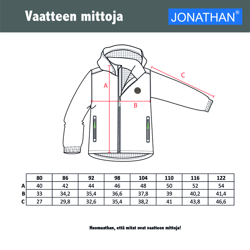 Jonathani kerge jope on suurepärane ülerõivas nii aktiivseks sportimiseks või õues tegutsemiseks kui ka vabaks ajaks. Jonathani tuulekindel kerge jope on kerge ja pakitav kergesti kokku. Selle jope armas muster muudab õuetegevused elavamaks!