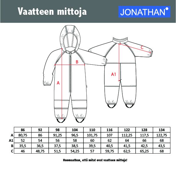 Jonathan softshell on mugav valik lapse igapäevaellu, kuna seda on lihtne kanda ning see kaitseb tuule ja niiskuse eest. Ideaalne valik ka jahedamate ilmadega välitegevusteks. Helkurdetailid, PVC vaba, tugevdatud põlved ja alumine osa, sees pehme ja soe fliis, eemaldatav kapuuts ja reguleeritavad jalakummid. Tõmblukuga tasku. Veekindel > 5000mm. Hingavus >5000g/m2/24h. Bionic-finish Eco. Materjal ja hooldus: Pealt 94% polüester, 6% elastaan + 100% polüuretaan. Seest: 100% polüester. Pesta 40 kraadi juures. Mitte kasutada valgendajaga pesuainet ja pesupehmendajat. Kuivatada toatemperatuuril.