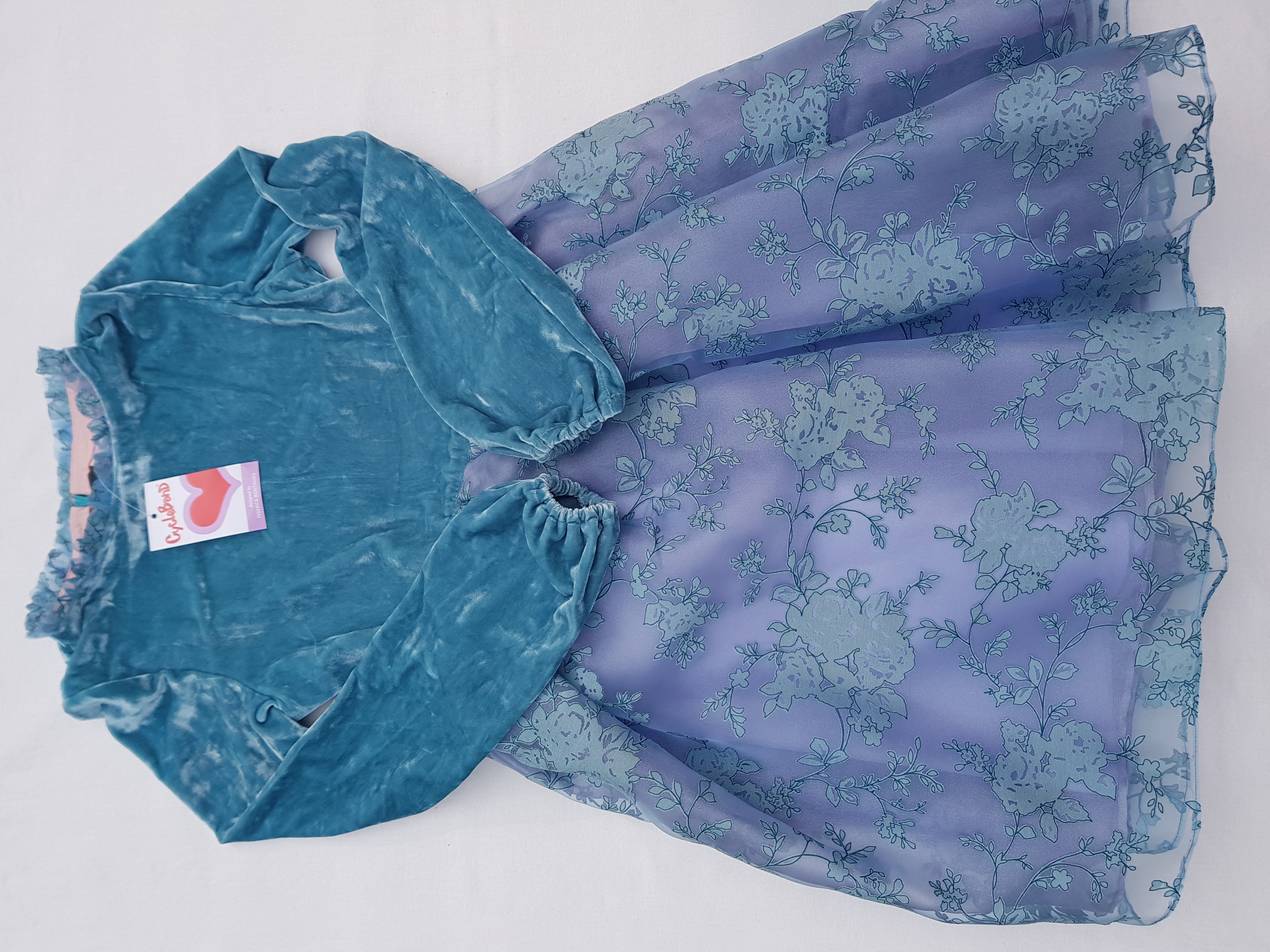 CycleBand väga uhke peokleit, 11/12 aastasele printsessile. Materjal: ülemine osa sametist 93% polüester, 7% elastaan, seelik 100% polüester ja vooder 57% polüester 43% nailon.