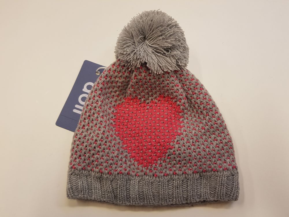 Döll soe ja veniv kootud tutimüts, suurus 51. Mütsi sisemuses fliisvooder ringjalt ümber kõrvade. Koostis: 100% polüakrüül ja voodriosa 100% polüester. Originaalhind 19.95€