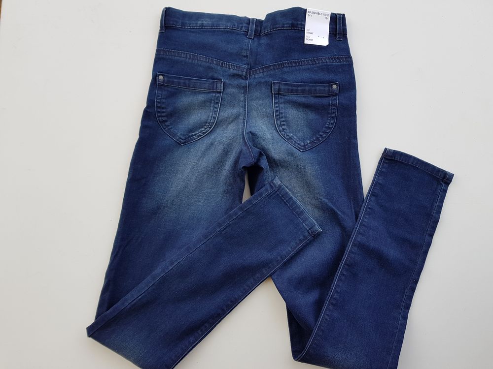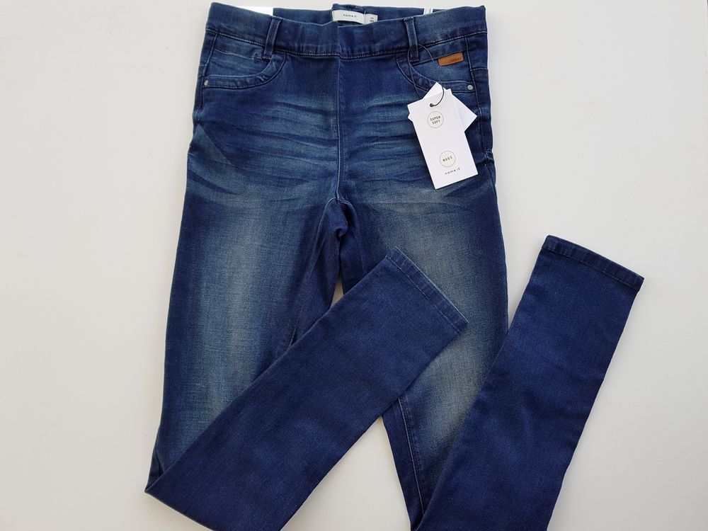 Name It pehmed ja maugavad skinny teksaretuusid, 164 cm. Vöökoht on reguleeritav. Koostis: 63% puuvill, 31% polüester, 4% viskoos, 2% elastaan.