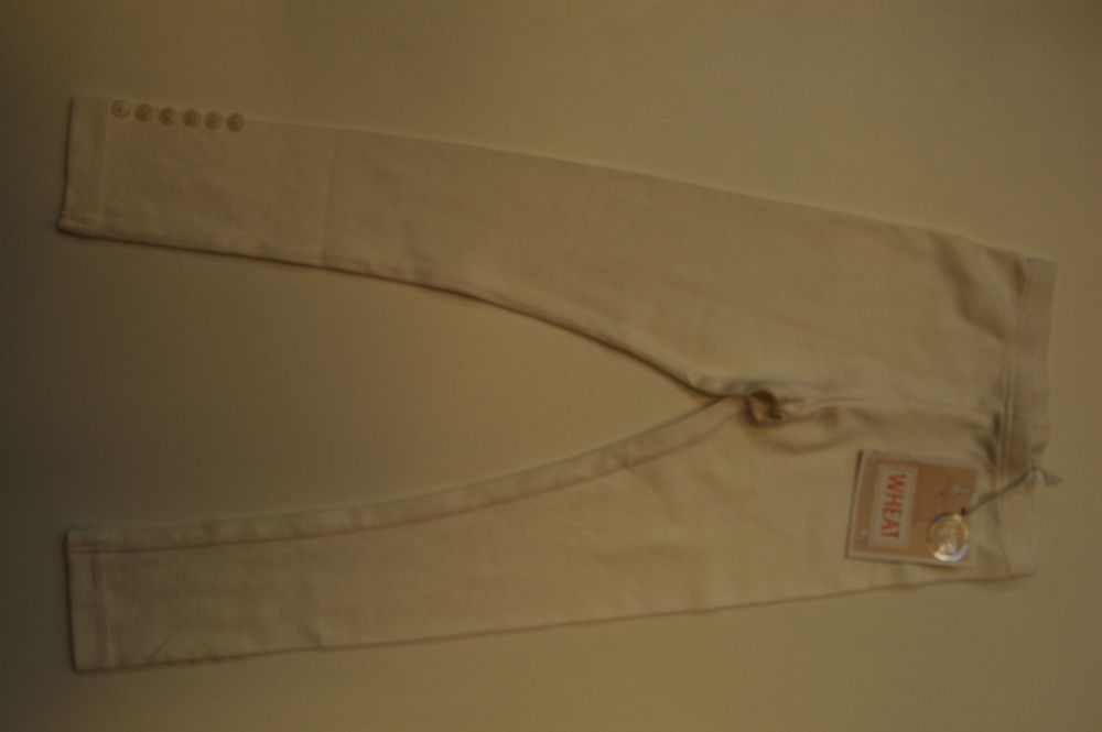 Wheat hästi pehmed valged retuusid, 104 cm. Koostis: 49% puuvill, 49% modal, 2% spandex.
