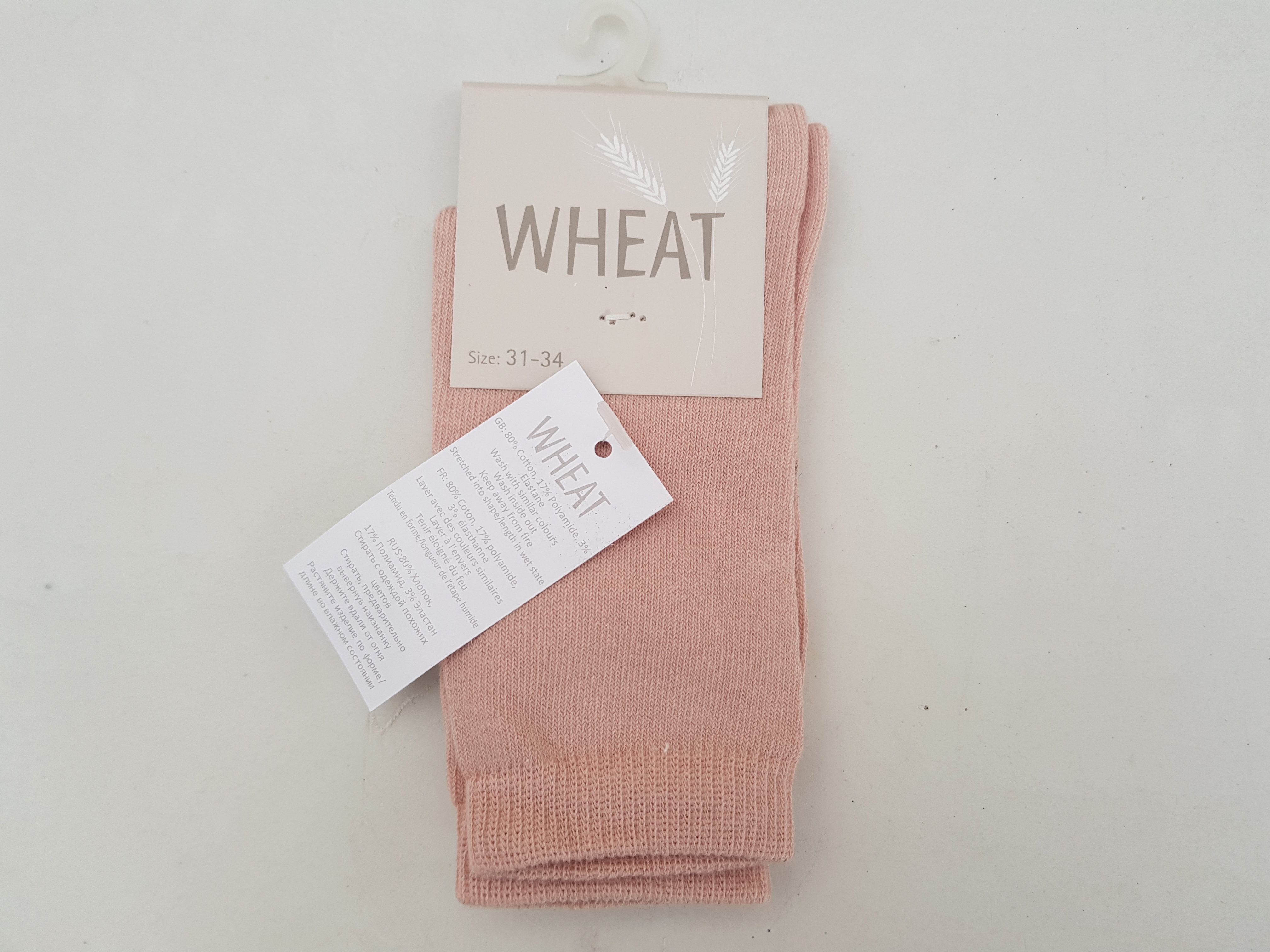 Wheat mõnusad pehmed sokid, suurus 31-34. (Puudriroosad) Materjal: 80% puuvill, 17% polüamiid, 3% elastaan.